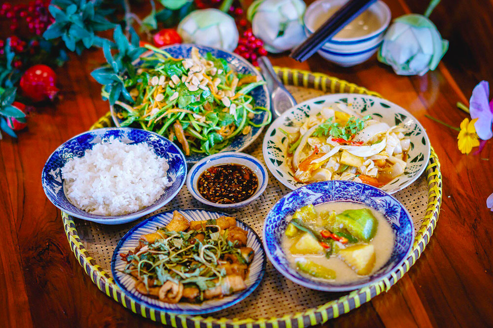 ẩm thực chay liên hoa Tây Ninh có núi, rừng và sông, suối nên các món chay Tây Ninh rất đa dạng trong nguyên liệu và chế biến, thể hiện rõ tính chất địa - văn hóa trong nghệ thuật ẩm thực địa phương.ẩm thực chay liên hoa Sản vật nổi bật nhất của núi là chuối núi, đu đủ, măng le, các loại nấm, rau rừng….ẩm thực chay liên hoa Sản vật từ sông có rau nhút, rau dừa, đọt lục bình non, bông điên điển, sen, súng…ẩm thực chay liên hoa Cạnh các bờ sông, ven suối còn có rất nhiều loại rau như: rau chiếc, rau sơn, rau lụa, so đũa, quả bình bát…ẩm thực chay liên hoa Ở vườn nhà các gia đình, có vô số các loại rau, hoa, quả, đậu, bầu bí… được trồng.ẩm thực chay liên hoa Từ những sản vật gần gũi đời thường, người dân Tây Ninh đã sáng tạo, biến tấu thành những món chay giản đơn nhưng cực kỳ hấp dẫn, lạ miệng như các món gỏi, món xào, hấp, chiên, nấu canh…ẩm thực chay liên hoa trong những bữa ăn hàng ngày.ẩm thực chay liên hoa Ngoài ra cách chế biến món ăn của người Tây Ninh cũng không cầu kỳ chủ yếu chặt to kho mặn, có nhiều màu sắc tươi tắn, cân bằng âm dương và dinh dưỡng từ việc chọn lọc kết hợp các sản vật sẵn có.ẩm thực chay liên hoa Khi món chay đã dần đi vào đời sống của người dân thì lâu dần cũng được nâng cấp để có mặt trên các bàn tiệc đãi khách,ẩm thực chay liên hoa dù là món chay nhưng không hề thiếu đi sự sang trọng, tinh tế, cầu kỳ như các món nem, chả giò, súp, lẩu, cari, cơm hạt sen…ẩm thực chay liên hoa