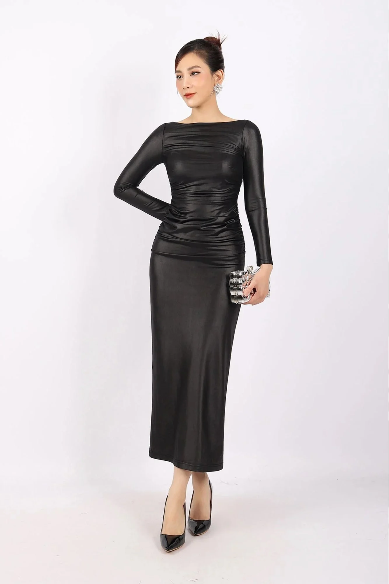 3. Các mẫu đầm đẹp Đầm đen dự tiệc cao cấp với chất liệu da bóng