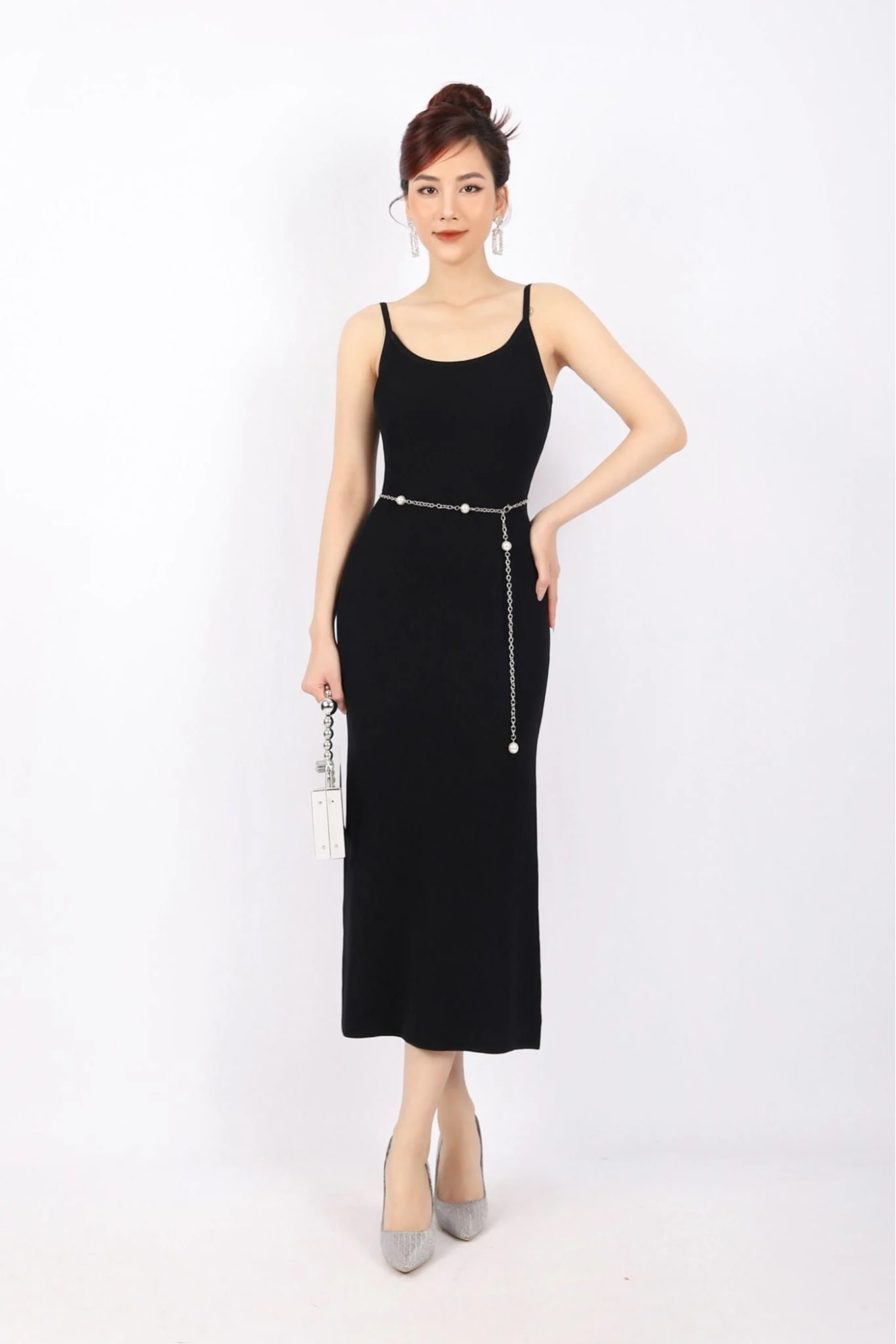 5. Các mẫu đầm đẹp Đầm màu đen dự tiệc 2 dây cổ vuông tinh tế